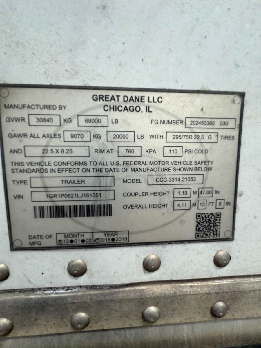 (12) 2020 Great Dane Champion Composite Plate Dry Vans