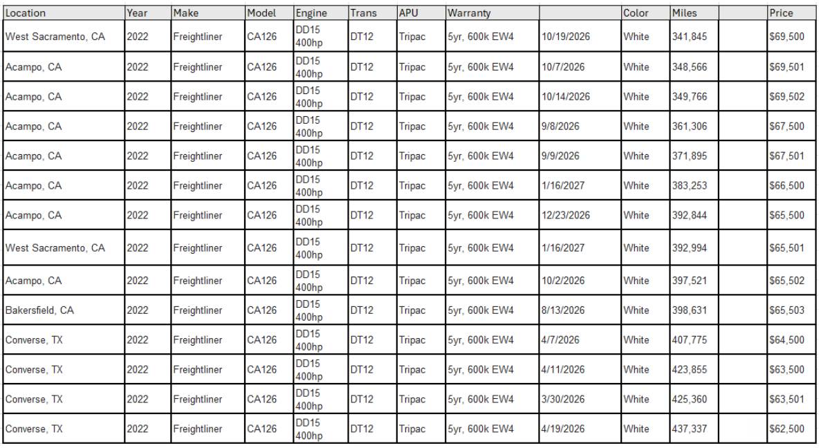 (14) 2022 Freightliner Cascadia CA126 – Walmart Fleet
